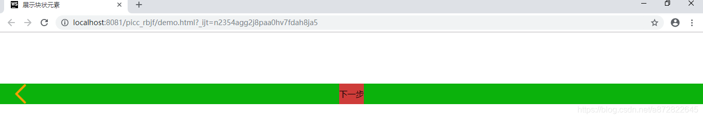 如图所示:返回按钮在左边。下一步的按钮在中间位置。它们在一行。并且水平对齐。