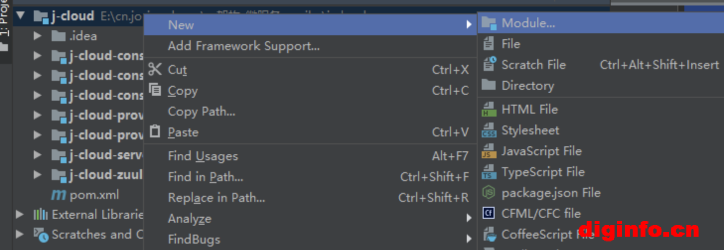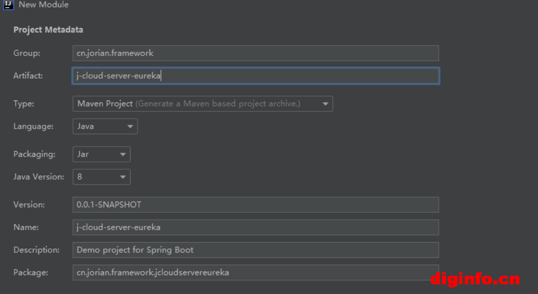 1.在父工程j-cloud右击创建一个module: j-cloud-server-eureka