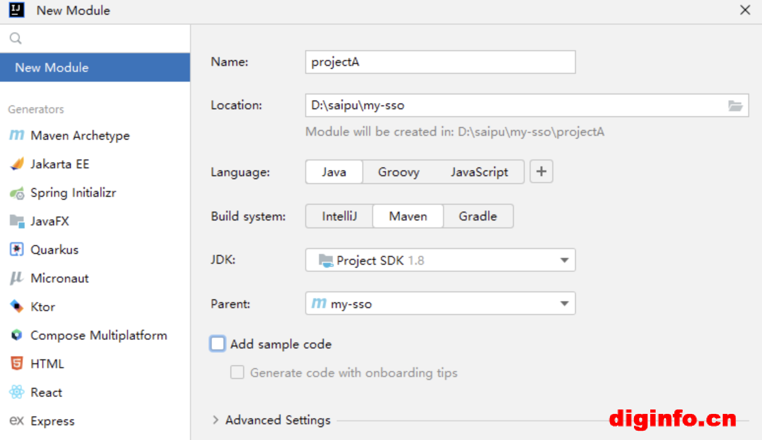 我们再次模仿projectA创建projectB子模块。内容基本和projectA的module相同。区别是把端口号修改为8082,启动类修改为ProjectBApplication.java。