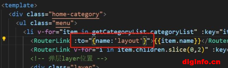 在路由参数中,name属性就是layout,这样的话,我们在导航跳转时就可以应用到name这个属性。