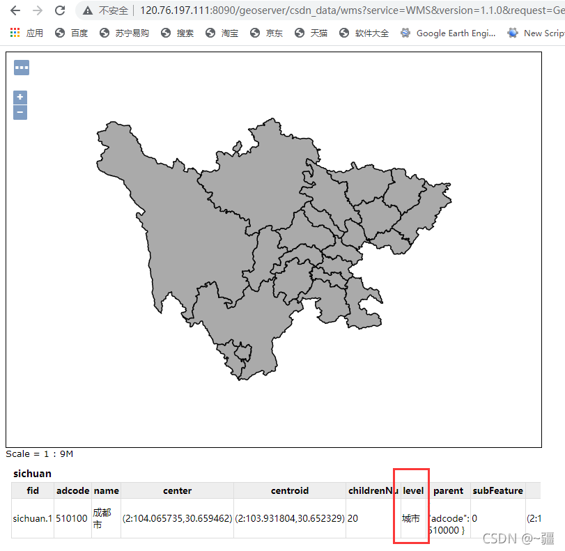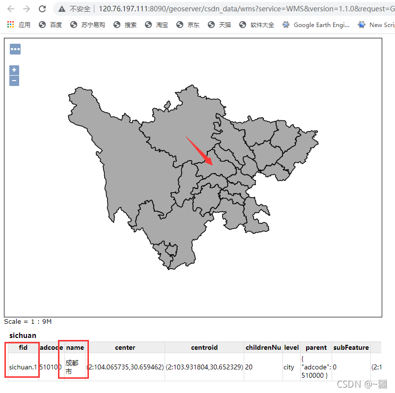 featureTypes: ["sichuan"], //所要访问的图层