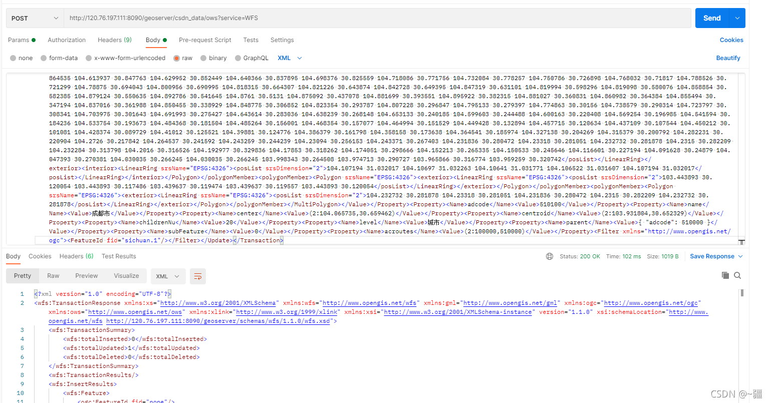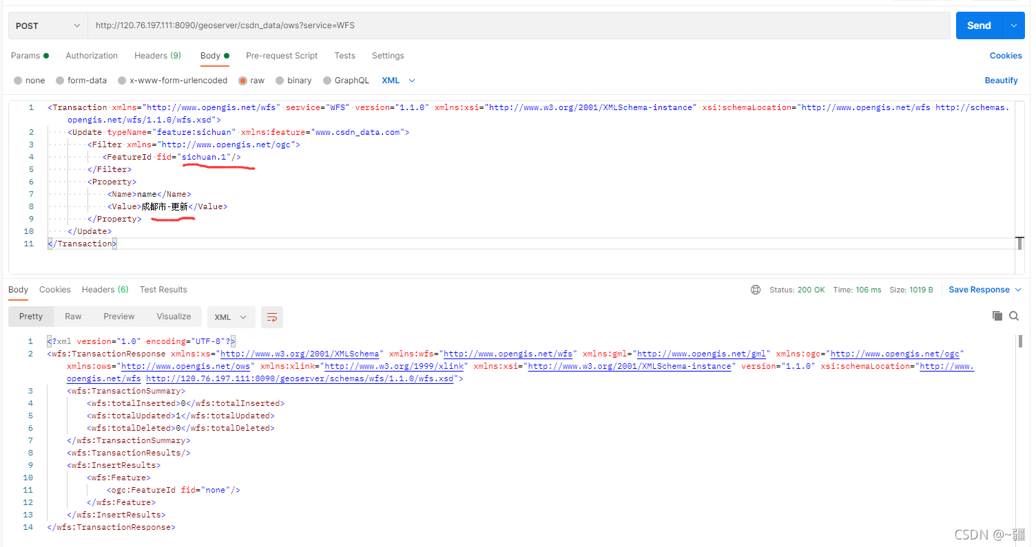 <Update typeName="feature:sichuan" xmlns:feature="www.csdn_data.com">