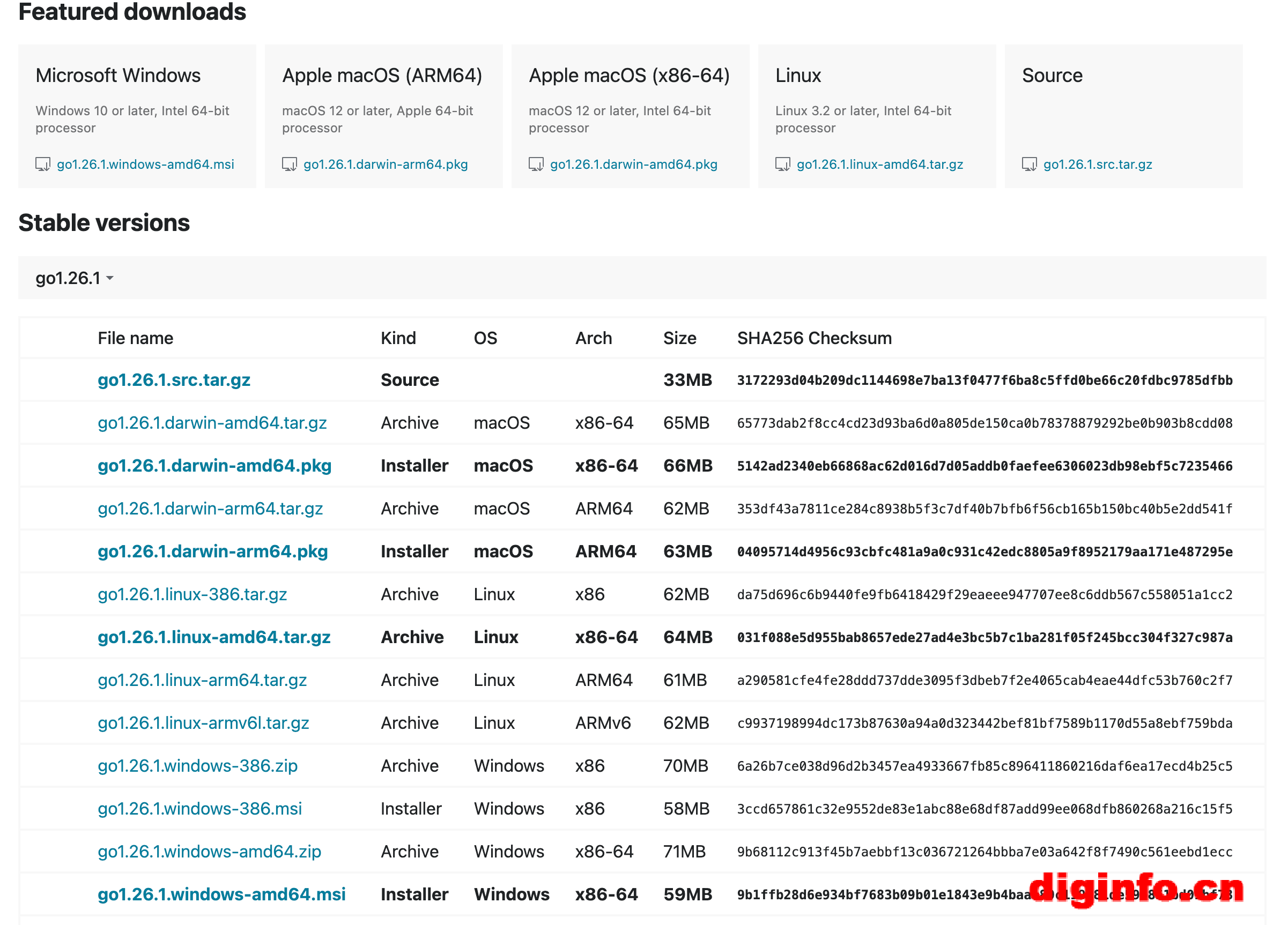 选择你的对应平台版本,可以下载安装包或者压缩包进行解压,两种方式都可以。小编选择下载压缩包,包名:go1.26.1.darwin-arm64.tar.gz